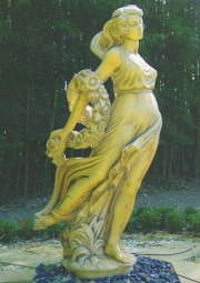 A large statue gracefully displayed with pride plays an important visual role in the garden, encouraging the visitor to see and appreciate its beauty.