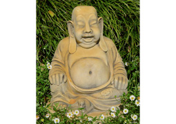 A small statue.... nestling amid the bounty of flowers and shrubs seasons the garden and mystery.